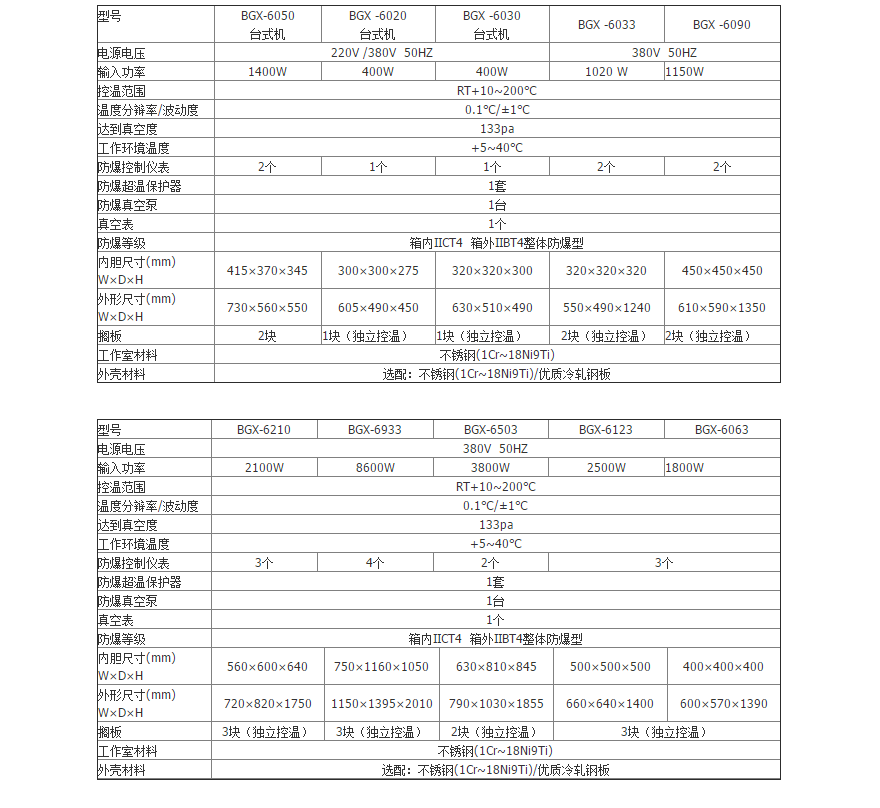 BGX防爆真空干燥箱系列采用304不銹鋼作為工作箱材料。用優(yōu)質(zhì)冷軋鋼板或304不銹鋼作為外殼材料。